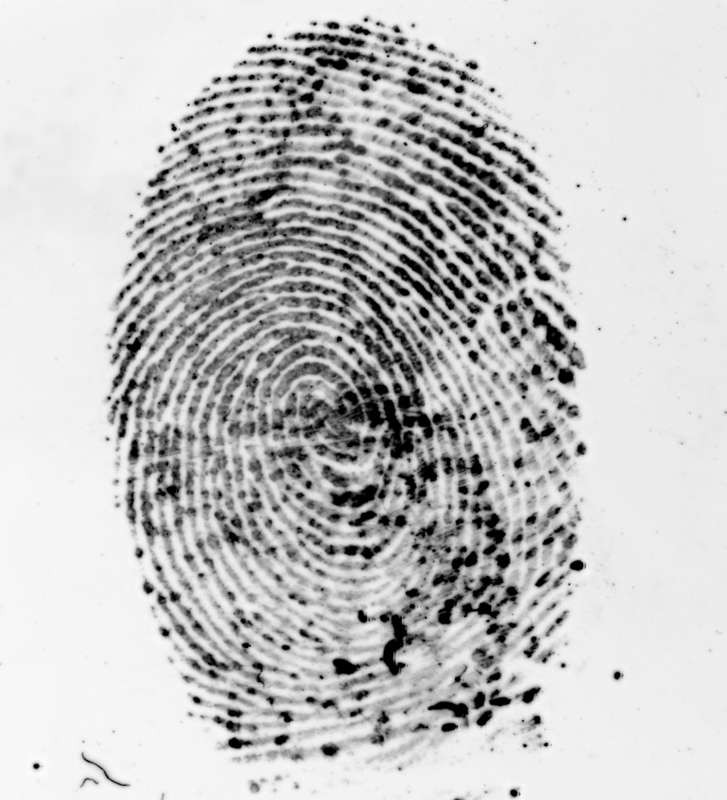 Fingerabdrücke (direkte Visualisierung oder mit üblicherweise verwendeten Pulvern betrachtet).