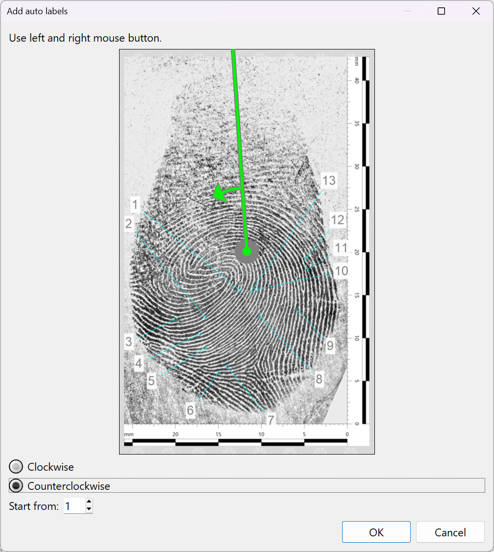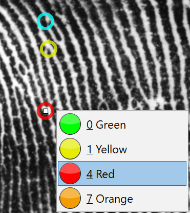 Mark minutiae on fingerprints using points that can be automatically converted into numbered points with lines. The appearance of these points is fully customizable to meet user preferences. The software also offers helpful features: