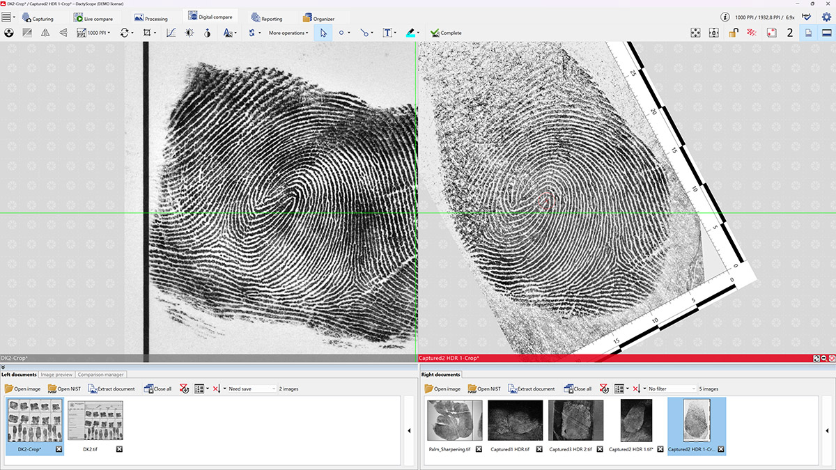 Digital Comparison – comparison of two captured images coming from any source, including a NIST file.