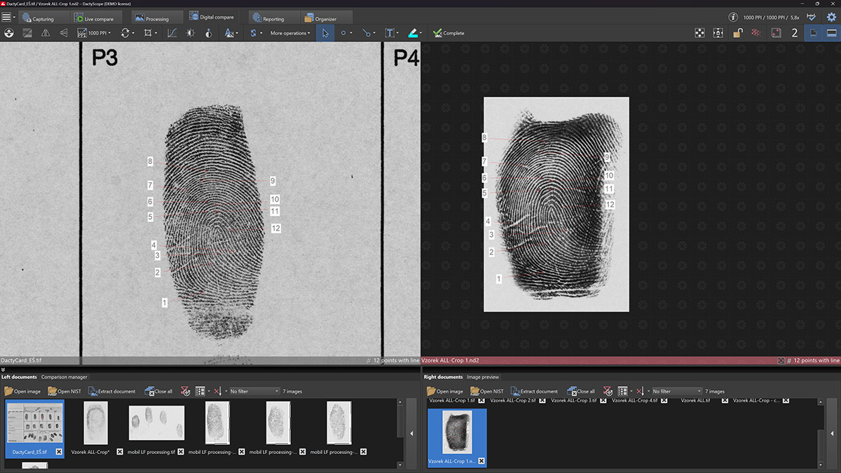 The software includes side by side comparison that helps to identify and visualize differences or similarities between analyzed fingerprints.